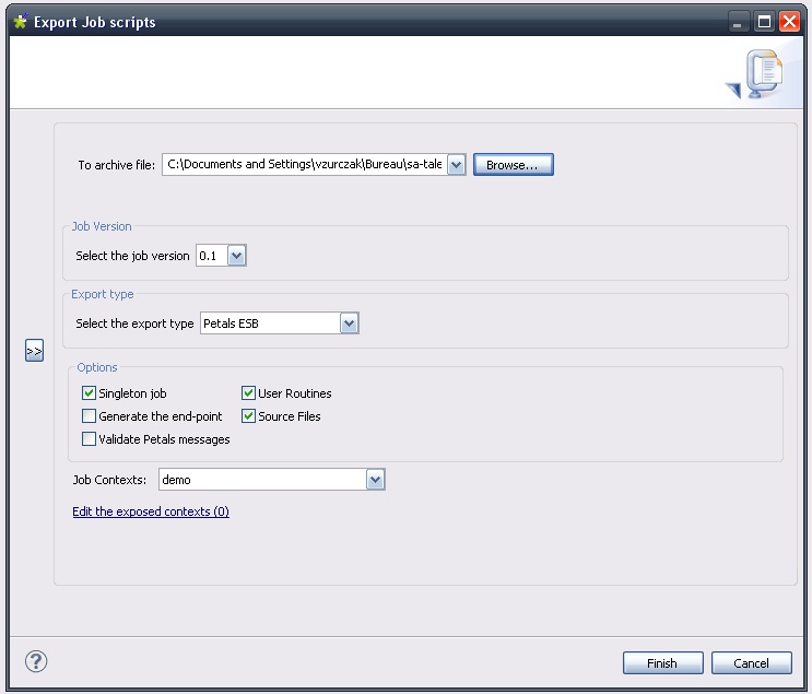 Exporting the job