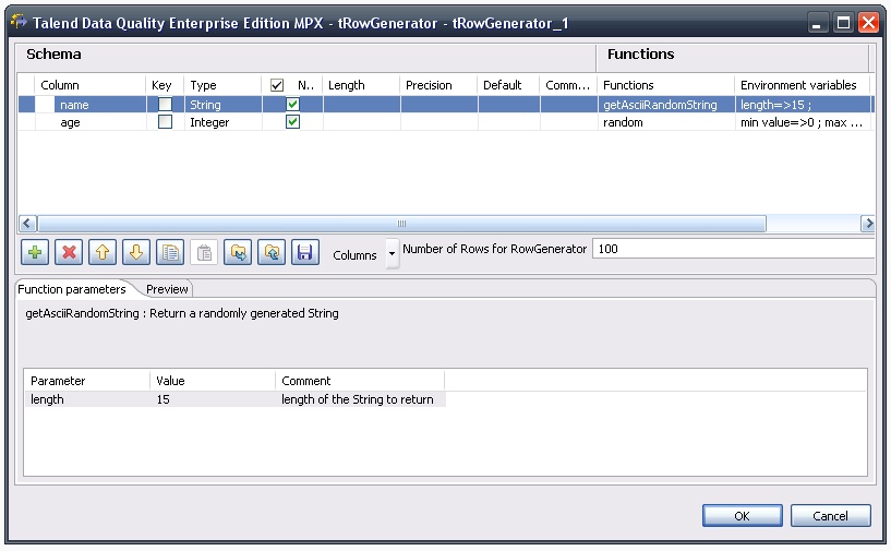 - The tRowGenerator generates the data flow.