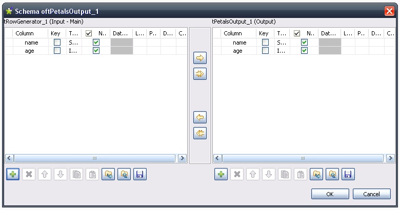 Here is the schema and the generation settings for the tRowGenerator component.