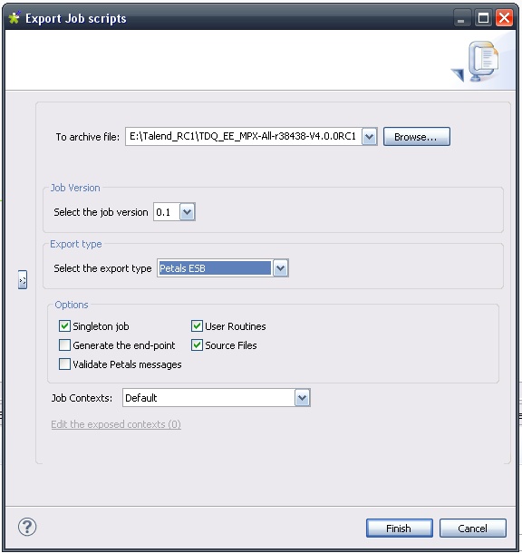 - One configuration for the Petals-SE-Talend, which embeds the job to execute.
