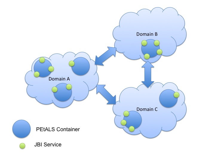 Petals ESB is not a simple distributed JBI container where all services can be accessed by all the consumers. To add some visiblity control containers can be classified by domains and subdomains.