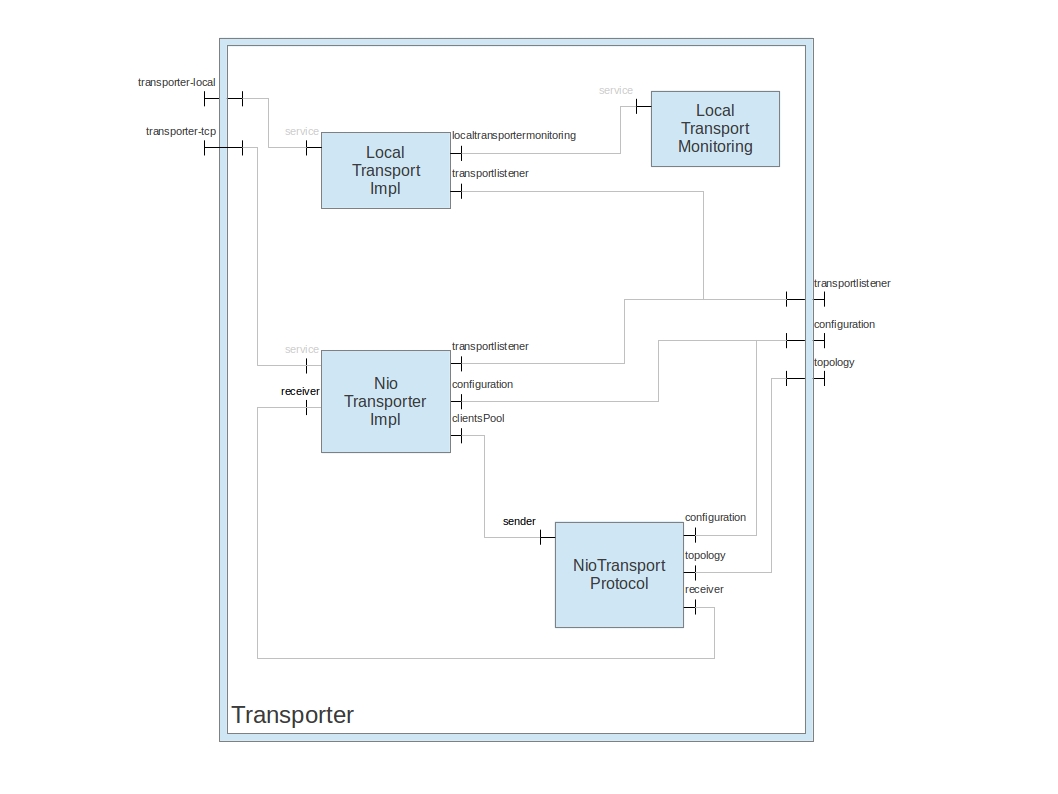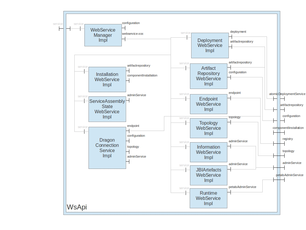 IntroductionThe following diagrams aim to describe the composition of the Fractal components of Petals ESB. By naming convention, if not specified, the default name of the interface 'server' is "service".