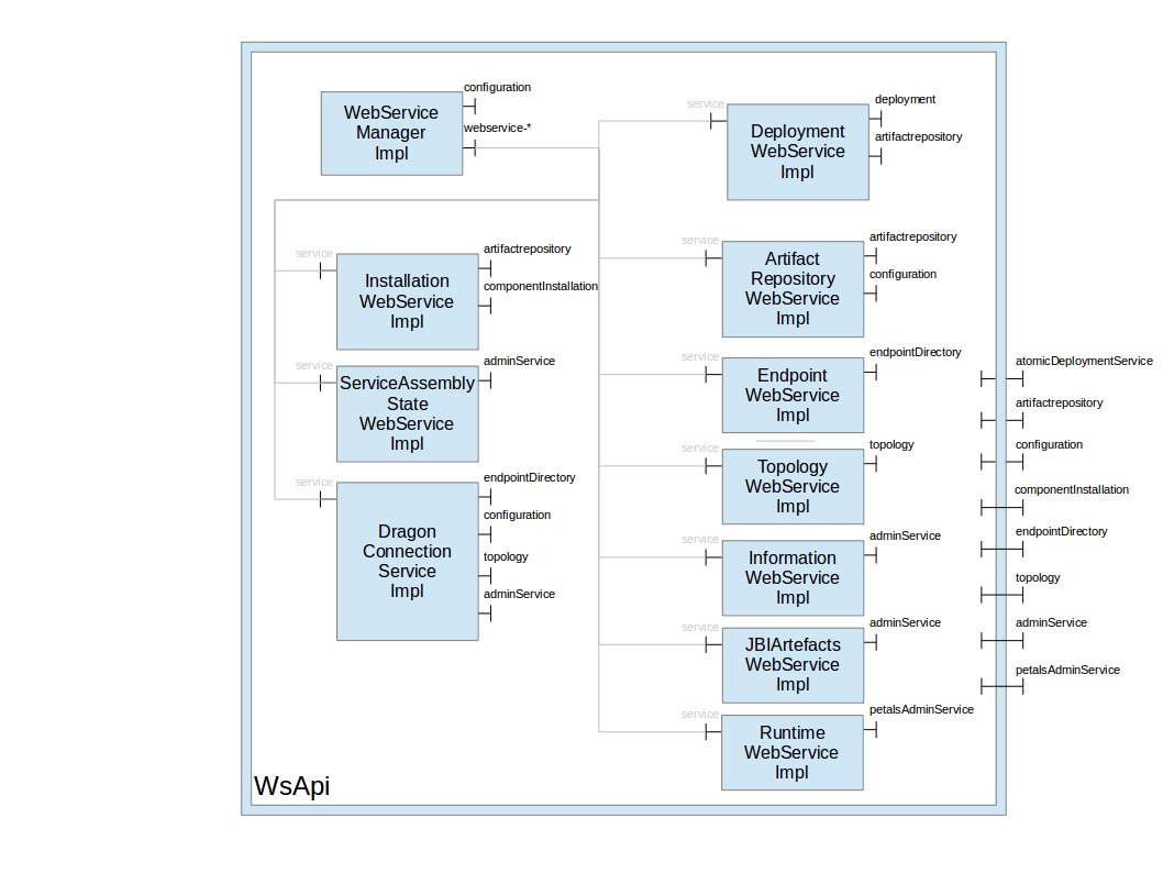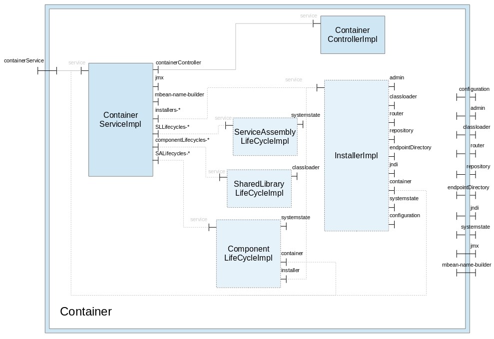 IntroductionThe following diagrams aim to describe the composition of the Fractal components of Petals ESB. By naming convention, if not specified, the default name of the interface 'server' is "service".