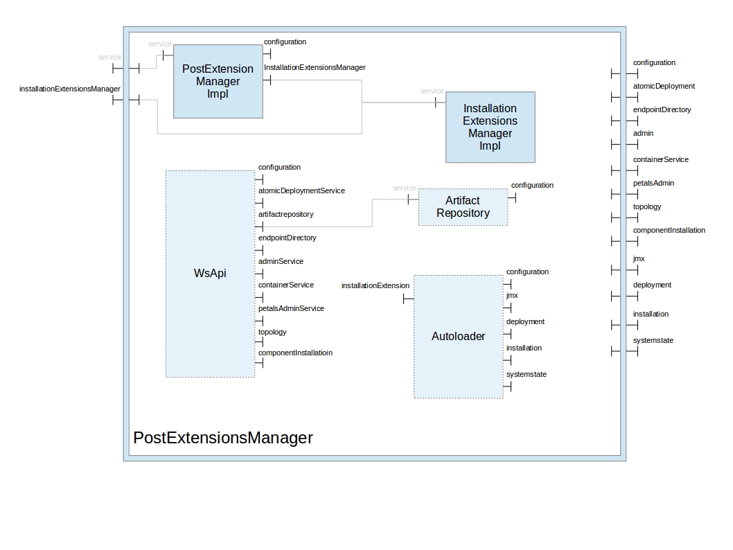 Each post-extension is instantiated dynamically after internal components y when Petals ESB is started according to the content of the Petals ESB classloader.