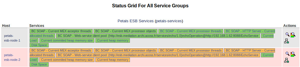 Following examples are based on a Petals ESB topology composed of two nodes on the same host.