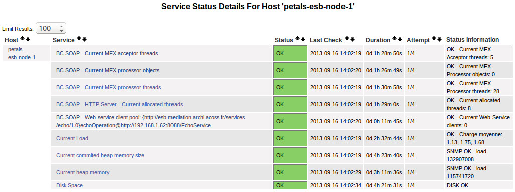 The integration of Petals ESB and Nagios is based on getting information about the JVM. This is done using SNMP probes.