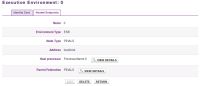 • The first tab of the Execution Environment editor provides identity information like its name, type (ESB, Application Server, etc.), address (host address), host processor (the server that host the exec env) and parent federation if the exec env is member of a group of exec envs (in case of federation, distribution, grid, etc.). Here you could remove an execution environment by clicking the delete button.