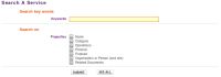 The use of the services search engine is similar to the one for organizations and persons. Enter your keywords and select fields on which the engine will search.