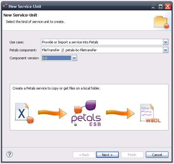 Technically, this tutorial shows the creation of a service-unit for the Petals-BC-FileTransfer component in provides mode.