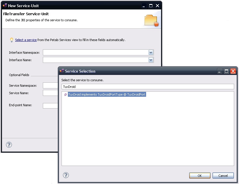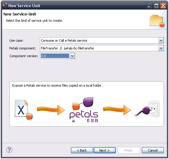 In the Petals Component list, select File Transfer // petals-bc-filetransfer.
