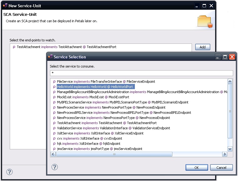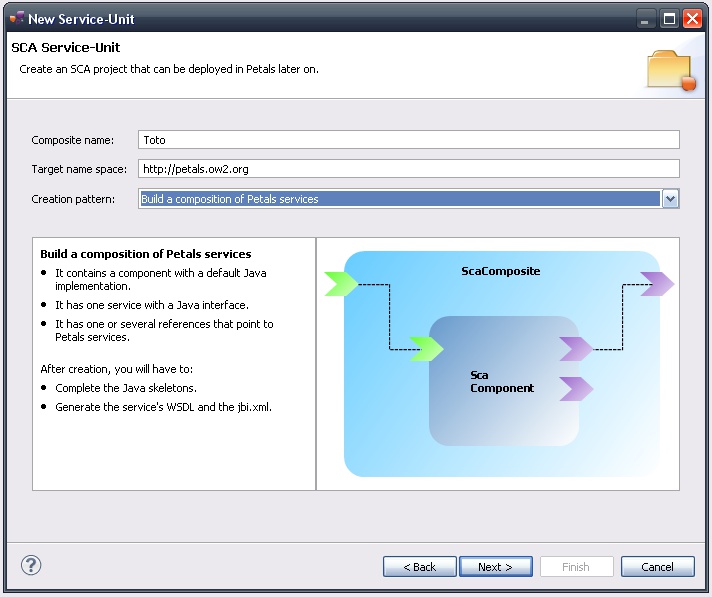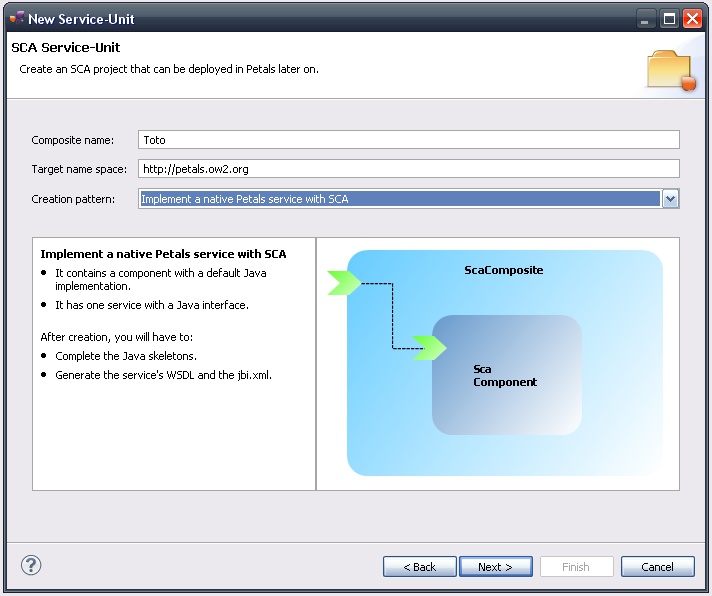 In the Petals Component list, select SCA // petals-se-sca.