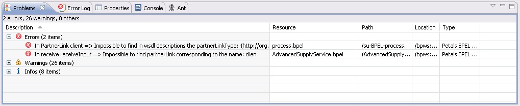Note that this validation is based on the same validation mechanism than the Petals BPEL engine.