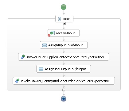 Invoking a service in BPEL is achieved by inserting an Invoke activity in the process.