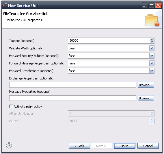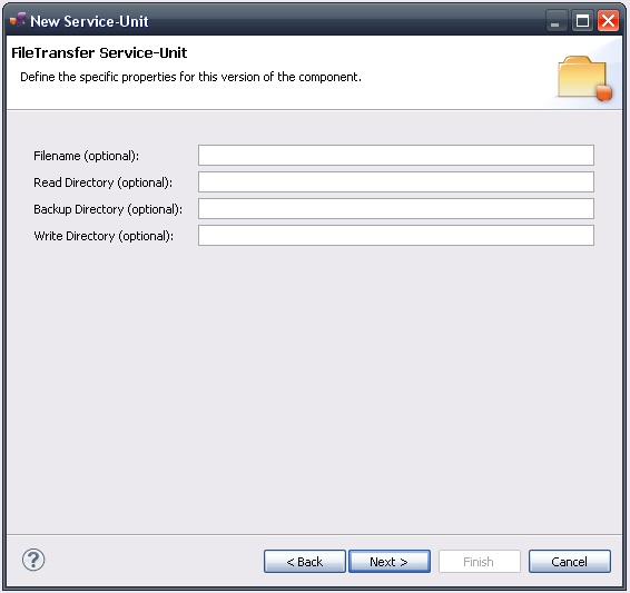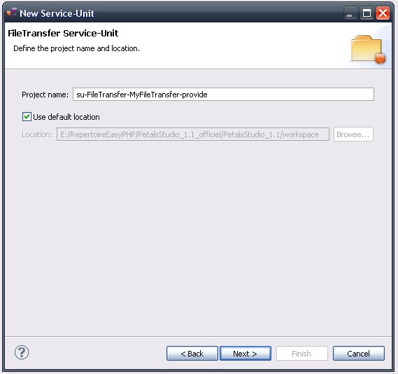 Indeed, this wizard will result in the creation of a project containing all the required elements for a File Transfer service-unit.