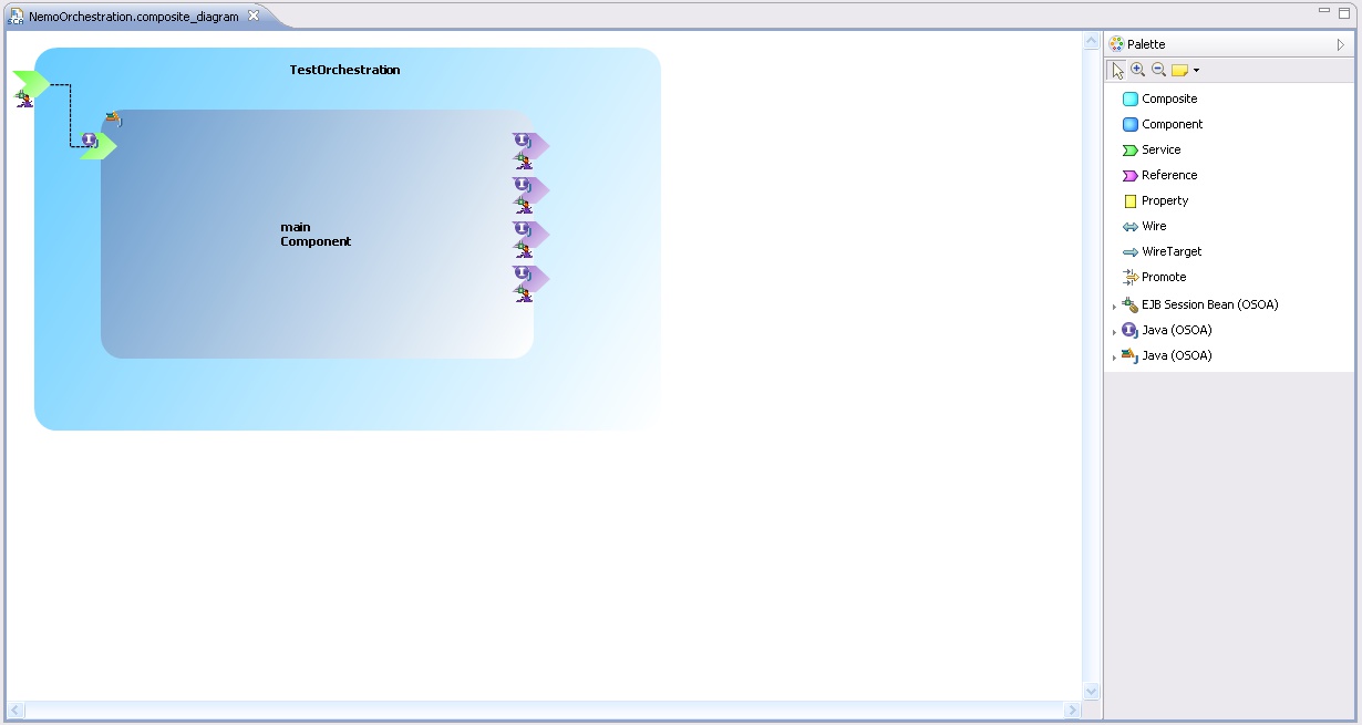 Here is a small sample illustrating the SCA orchestration of 2 services.