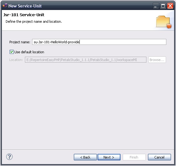 In the Petals Component list, select Jsr-181 // petals-bc-jsr181.