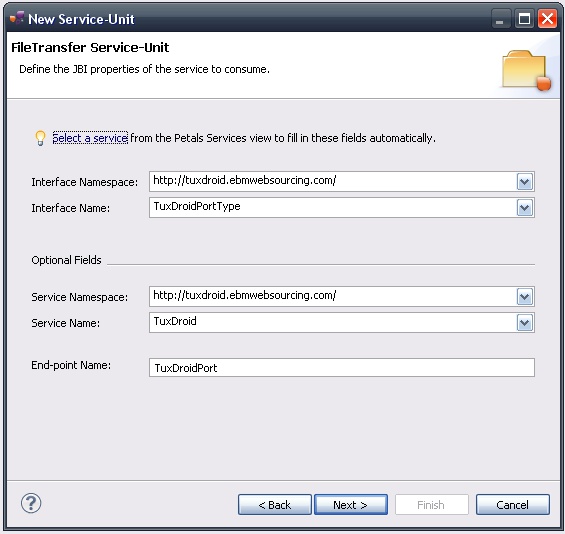 In the Petals Component list, select File Transfer // petals-bc-filetransfer.