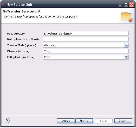 Indeed, this wizard will result in the creation of a project containing all the required elements for a File Transfer service-unit.