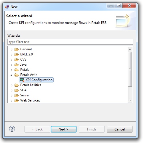 Click File > New and select KPI Configuration under the Petals Attic category.