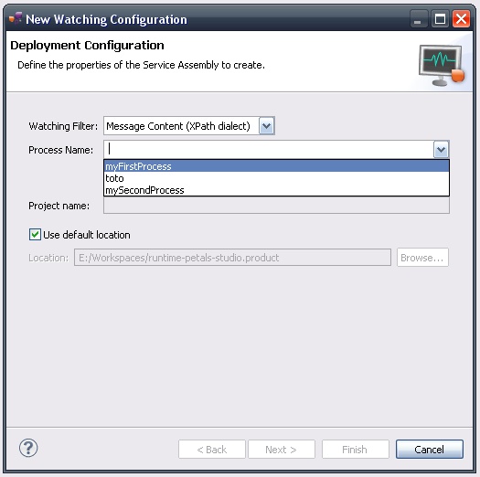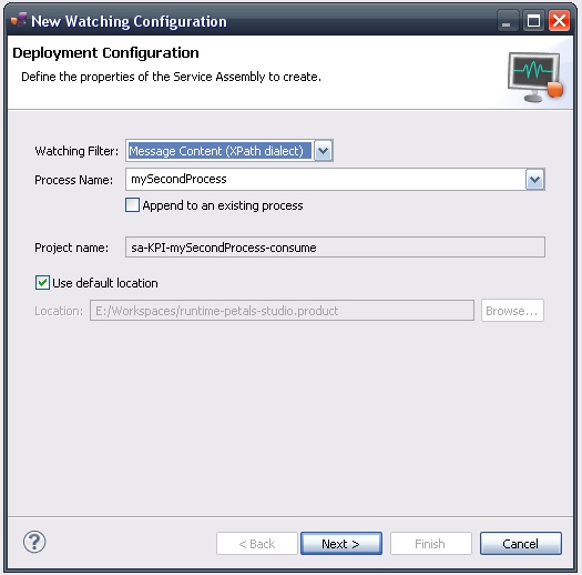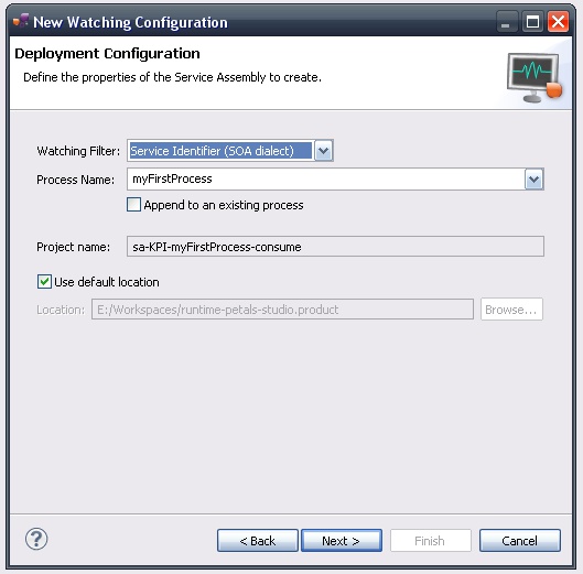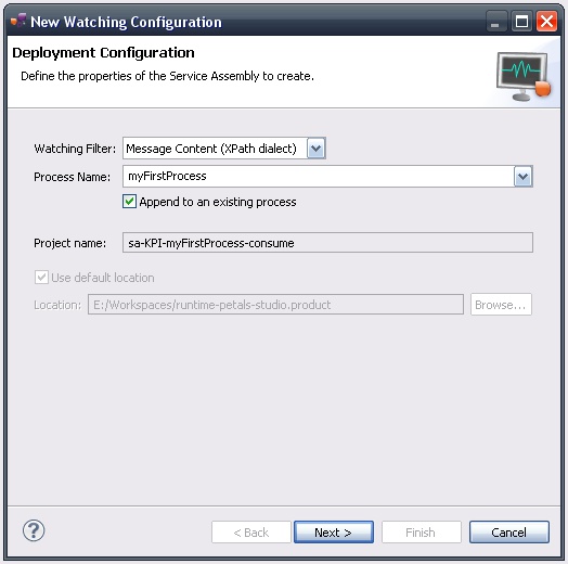| The studio assumes a process is defined by a Service Assembly project for the [Petals KPI component]. It also assumes this project embeds all the service-units for the steps that constitute this process. |