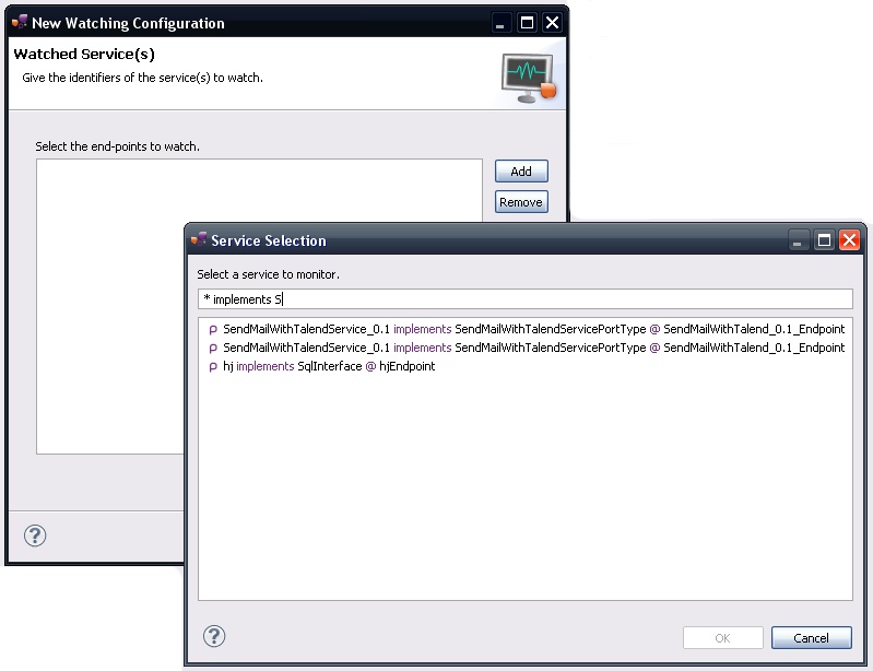 Click Add and select services from the Petals Services view (provided it was populated).