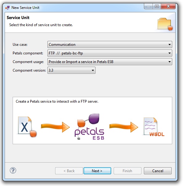 In the Petals Component list, select FTP // petals-bc-ftp.