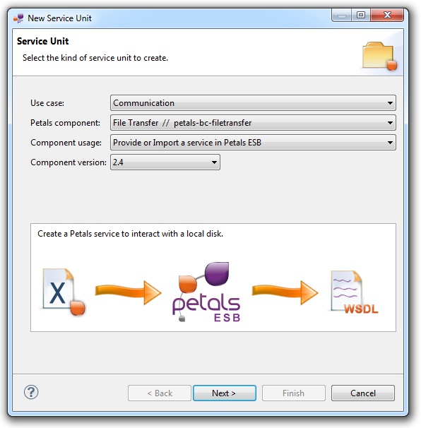 In the Petals Component list, select FileTransfer // petals-bc-filetransfer.
