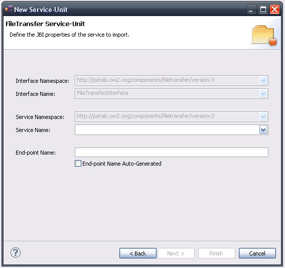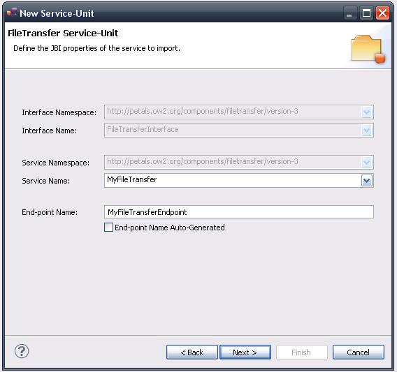 Indeed, this wizard will result in the creation of a project containing all the required elements for a File Transfer service-unit.