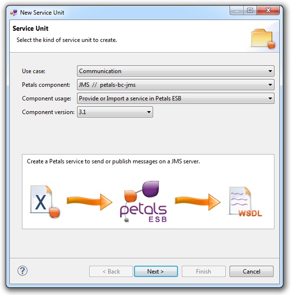 Indeed, this wizard will result in the creation of a project containing all the required elements for a JMS service-unit.
