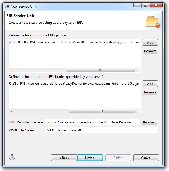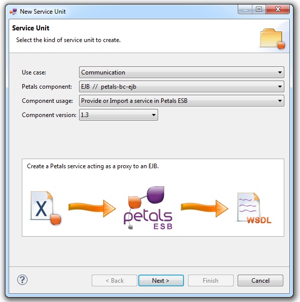 In the Petals Component list, select EJB // petals-bc-EJB.