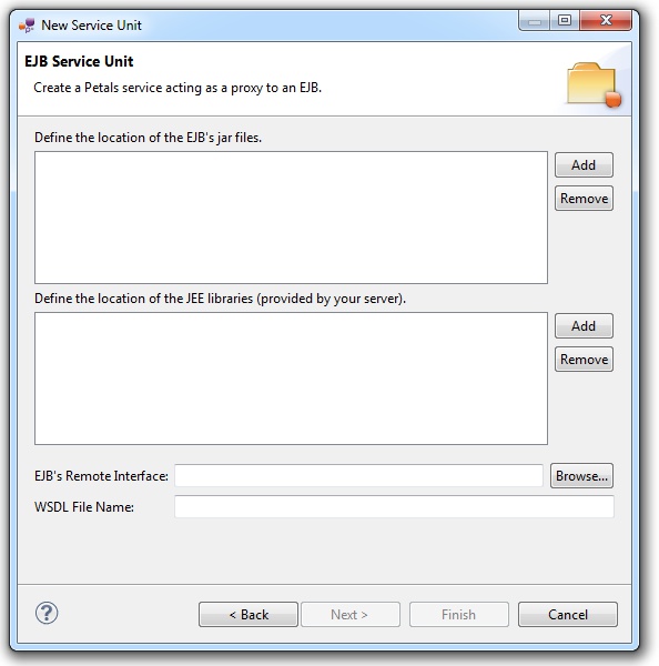 Indeed, this wizard will result in the creation of a project containing all the required elements for a EJB service-unit.