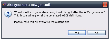 Clicking Yes will in addition generate a new jbi.xml that references the WSDL.