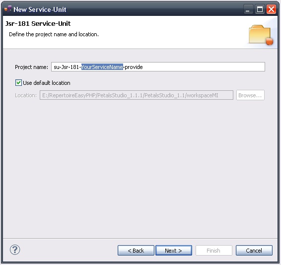 In the Petals Component list, select Jsr-181 // petals-bc-jsr181.