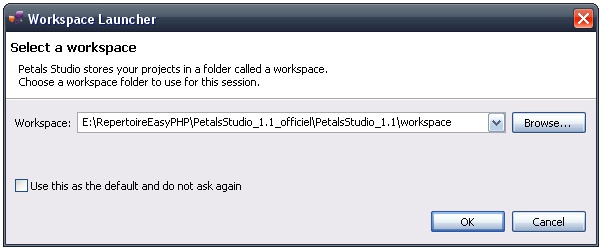 The launching configuration is defined in the PetalsStudio.ini file.
