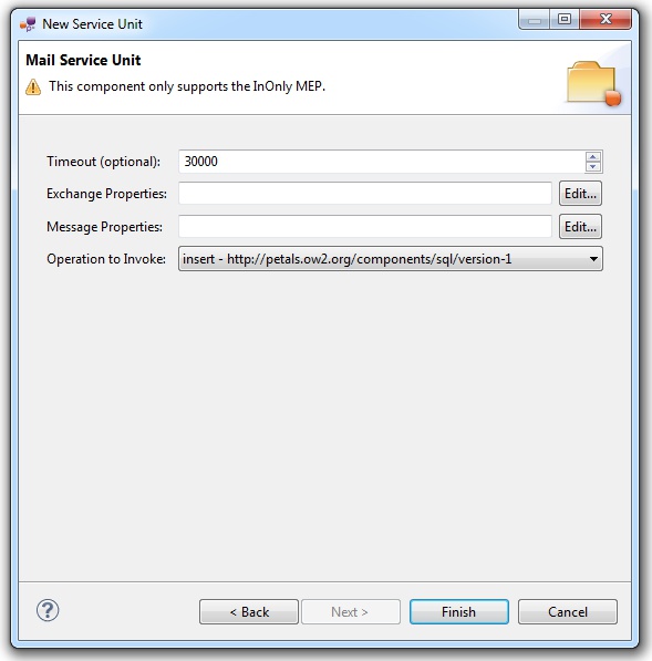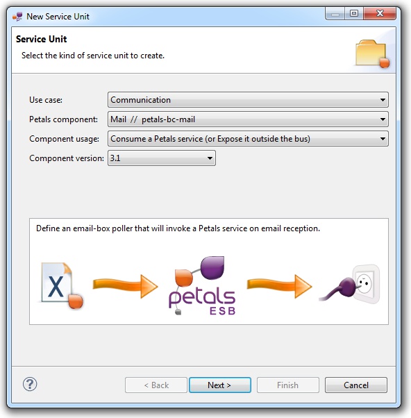 In the Petals Component list, select Mail // petals-bc-mail.