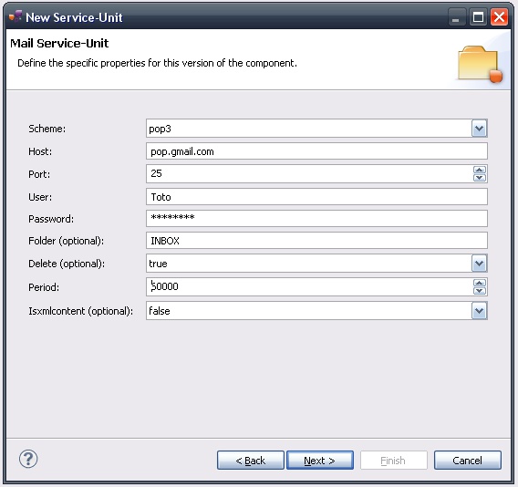 Indeed, this wizard will result in the creation of a project containing all the required elements for a Mail service-unit.