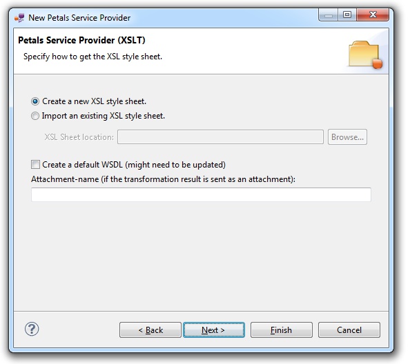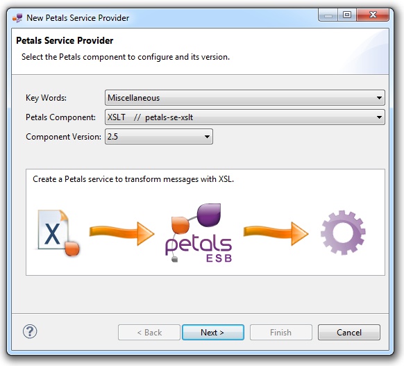 In the Petals Component list, select XSLT // petals-se-xslt.