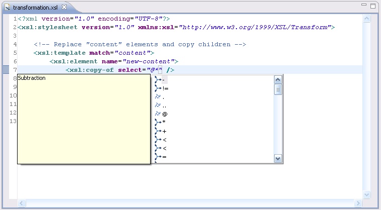 You can use it to edit the XSL style sheet, using its built-in validation and content assistance (available by pressing Ctrl + space).