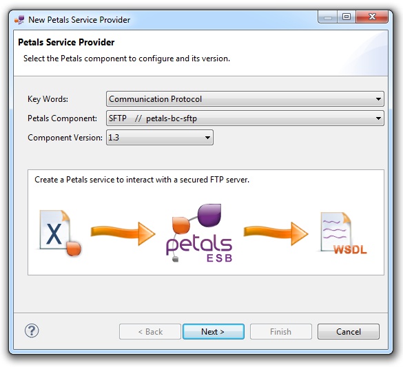 In the Petals Component list, select SFTP // petals-bc-sftp.