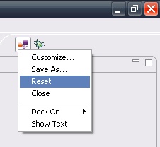 Once open, it is possible to customize it, to close it, to reset it or to switch the main perspective.