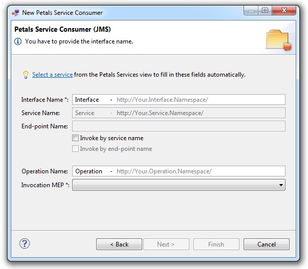 In the menu, select File > New > Petals Service Consumer.