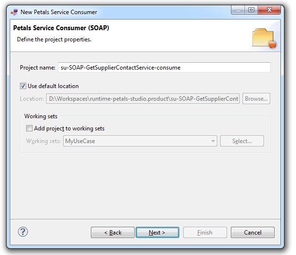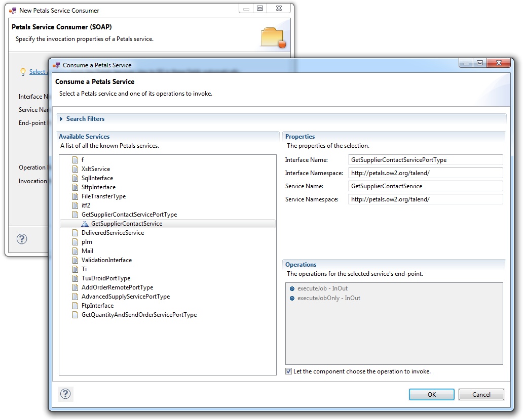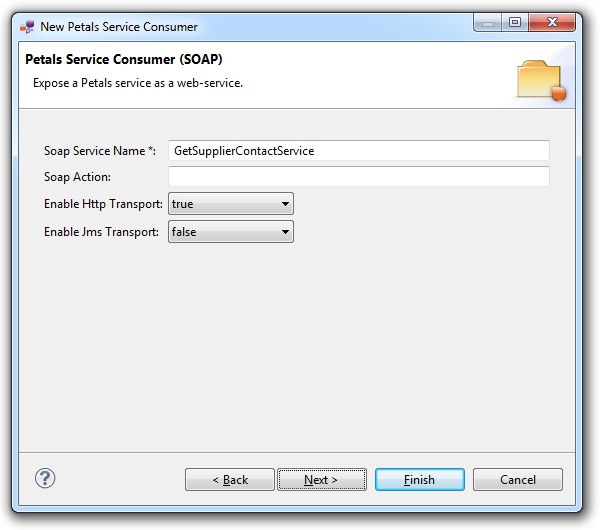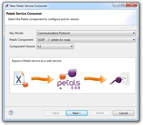 In the Petals Component list, select SOAP // petals-bc-soap.