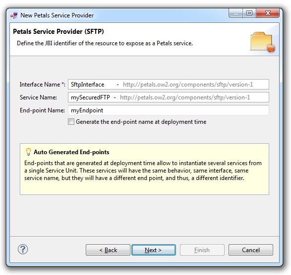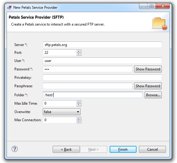 In the Petals Component list, select SFTP // petals-bc-sftp.