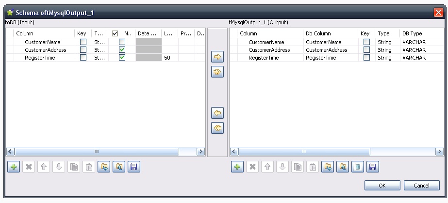 Here is the schema of the tMySqlOutput component.