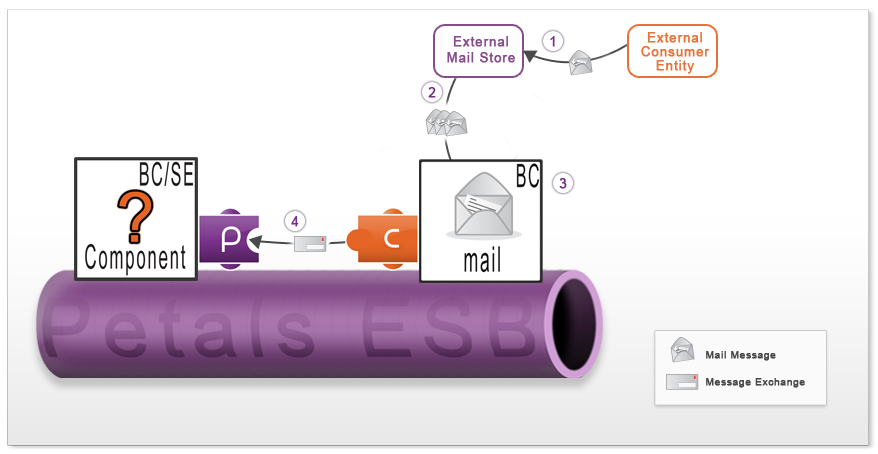 Petals Mail binding component (MailBC) allows to receive mails from external consumer and to bind them to message exchanges intinded to internal jbi components. To receive new mails, MailBC can be linked to specific mail stores. It will check these stores periodicaly to retrieve new mails. If it finds a new mail in a store, it will process it (map this mail to a message exchange) and send it to the targeted jbi endpoint. Then the mail is removed from the store. So, all mails (read or unread) in a store are considered as new mail.